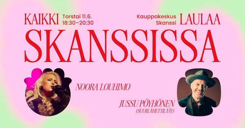 Kauppakeskus Skanssissa järjestetään torstaina 11.6.2026 klo 19 alkaen kaikille avoin ja maksuton yhteislaulutapahtuma Kaikki laulaa Skanssissa. Allsång på Skansen -henkisessä kesäillassa yleisö pääsee laulamaan yhdessä rakastettujen artistien kanssa.